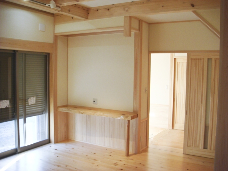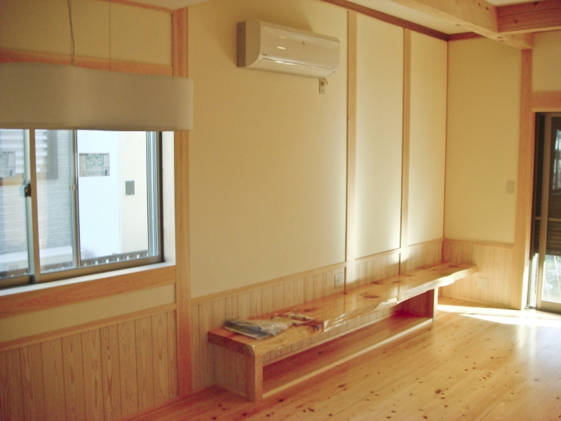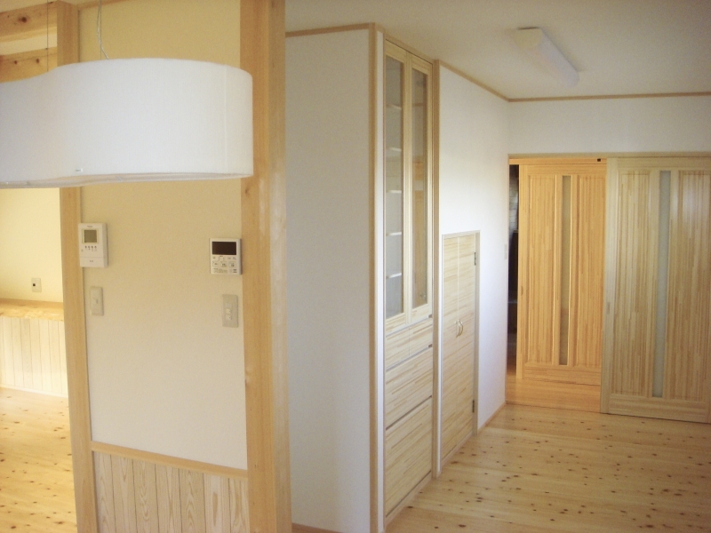備え付けの家具、階段、随所に桧を使用しています