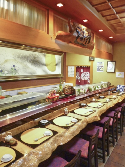 一枚の楓(カエデ)で作ったカウンターが美しく輝きます